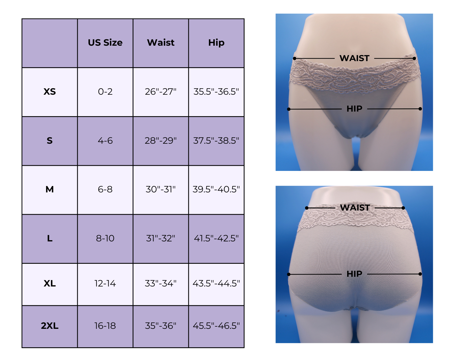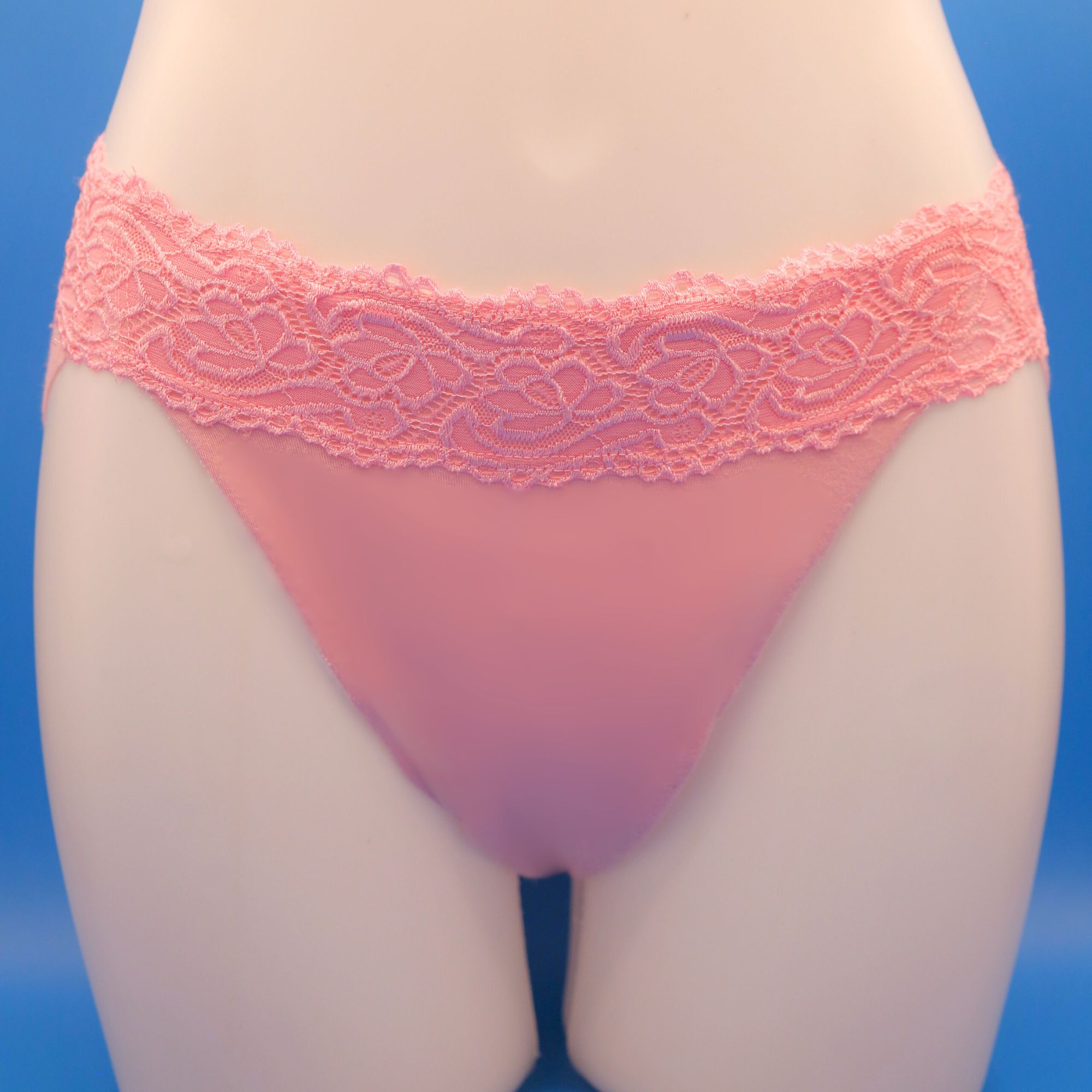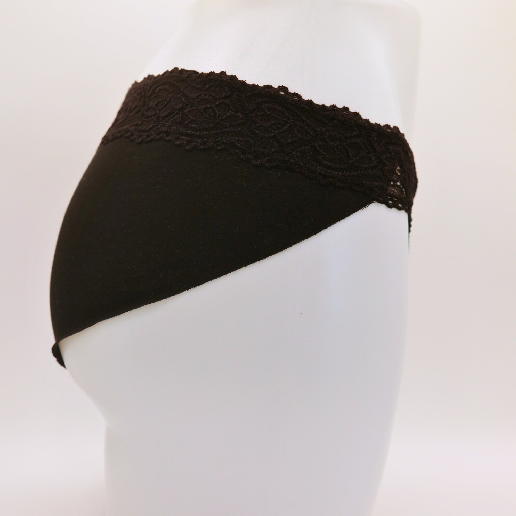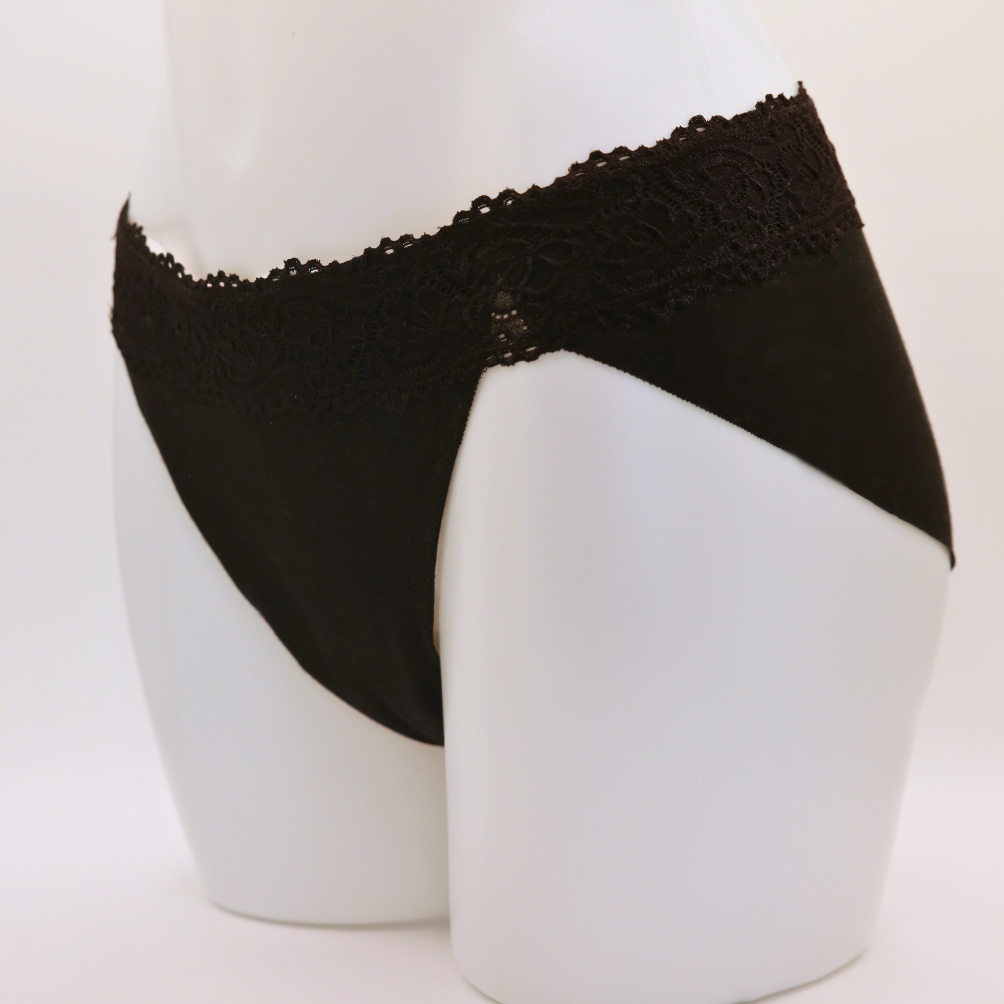 Our mesh style is high-waisted and a great choice for those who dislike the look or feel of lace. The lace style has a lower rise, sitting below the hip bones, which eliminates pressure around the navel area. We are currently developing even lower-rise options to accommodate a wider range of preferences.